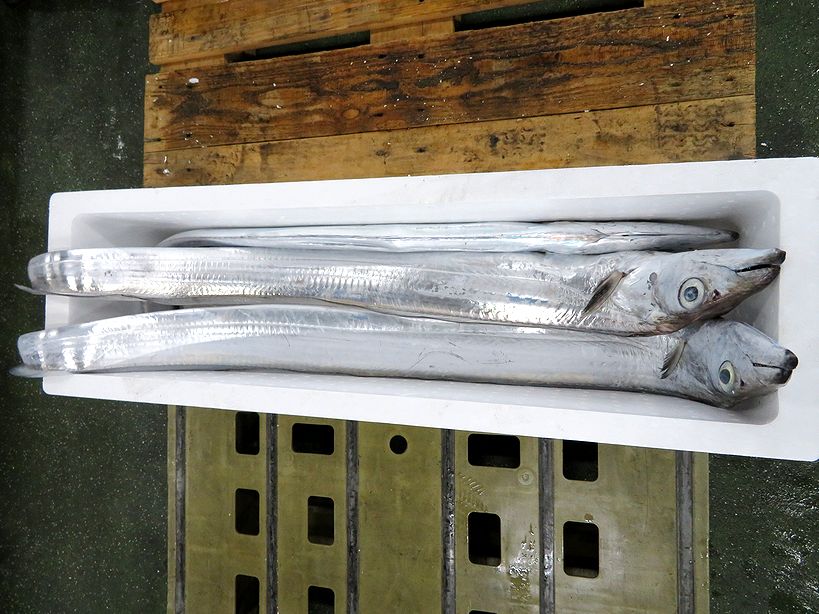 天然物鮮魚「2号物品」のせり品目(タチウオ国内産800㌘以上)に該当するため、鮮魚課でセリにかけられます。