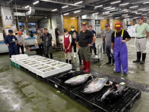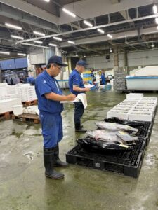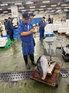 平塚市漁協の定置網(日海丸)より、キハダマグロが4本入荷しました。