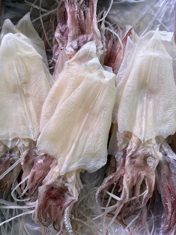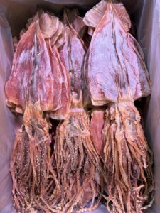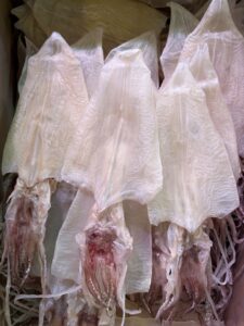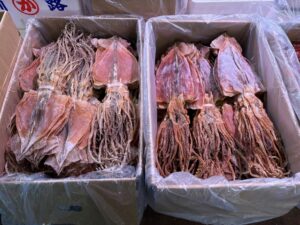 このケンサキイカのスルメは国産であることもあり、キロ当たりの値段は15,000円を下らぬ品物です。