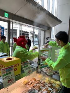 ちょうど16日の土曜日は、大井町駅前の阪急百貨店で『プチ・横浜中央市場まつり』が開催され、。当社社員が5名お手伝いに出向きました。