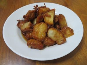 そして昨日は、㈱石橋の『つまみごぼう』と『もやし揚げ』を使って、さつまあげの甘煮に似せて一品作ってみました。