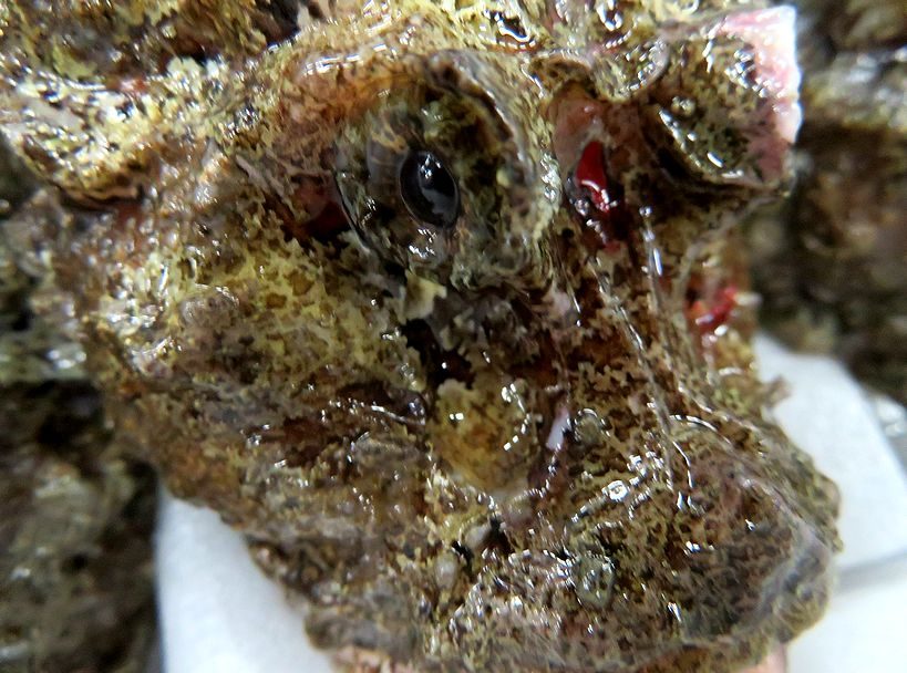 オニオコゼは、背ビレに毒を持つ棘を持っているので取扱い要注意です。