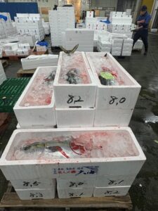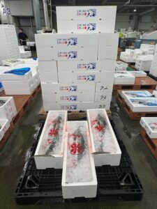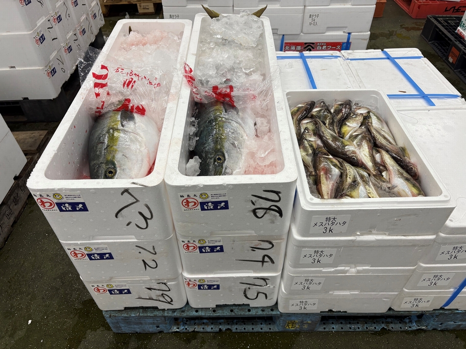 ブルー、ピンクの発泡スチロールに入ったブリは、入荷ゼロではありませんが微妙な数です。