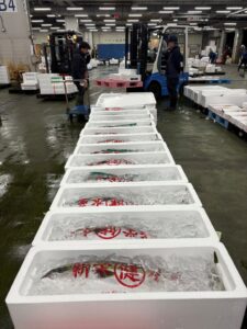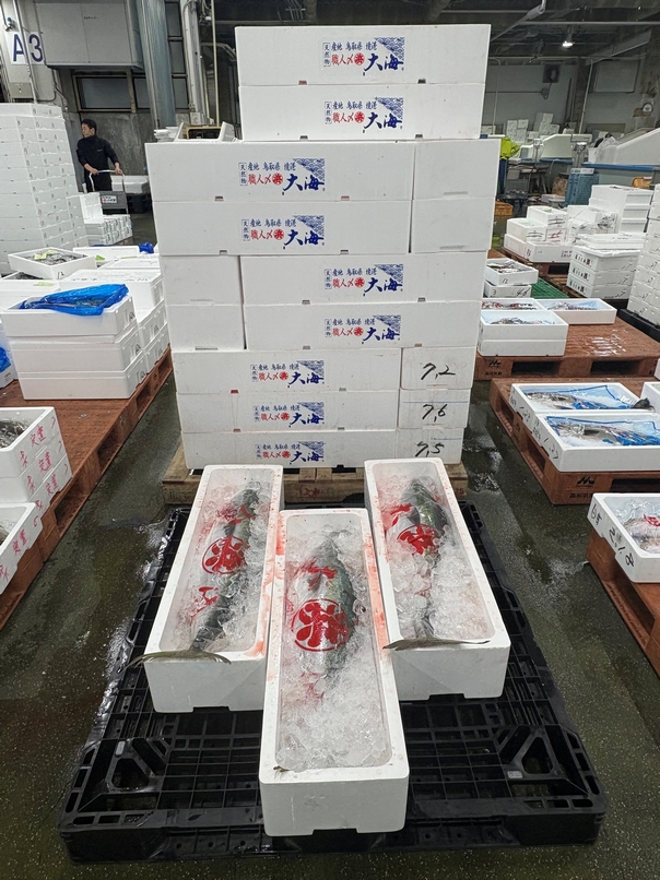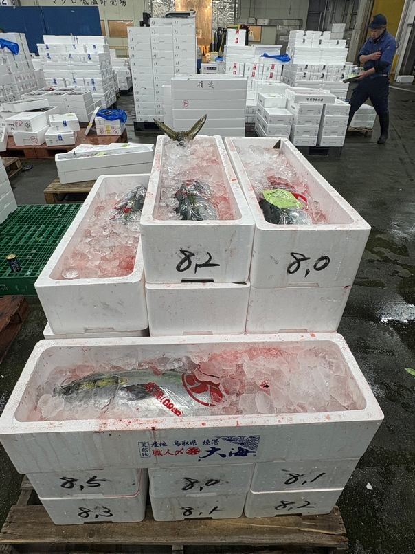 両県のブリに代わって、横浜市場では鳥取や島根・京都のブリが、従前の売り場を占拠しております。